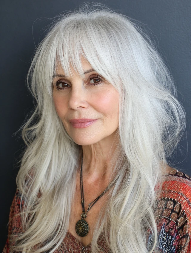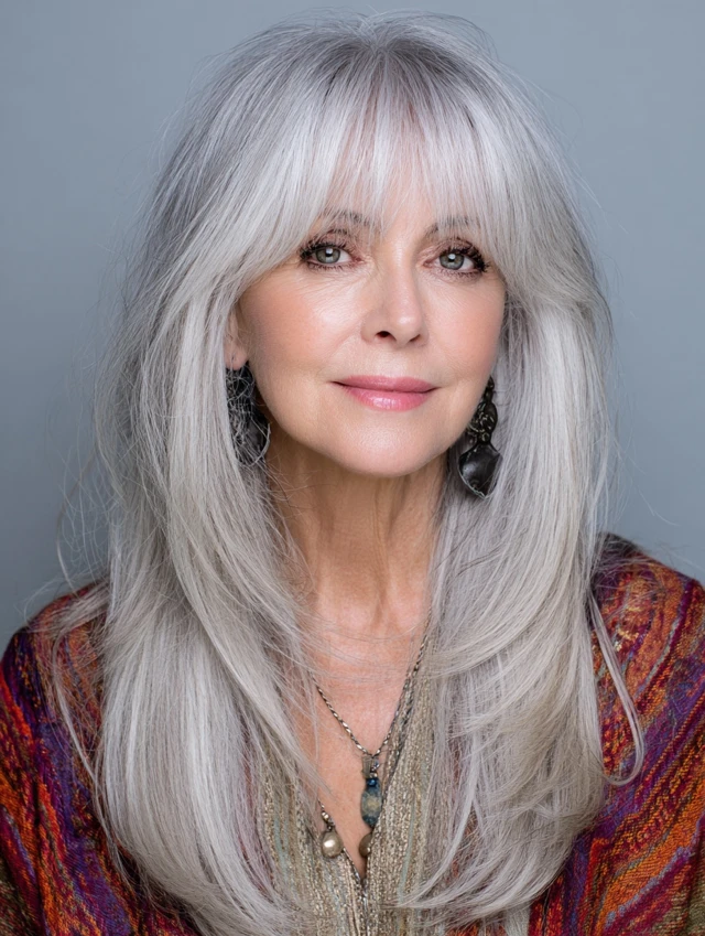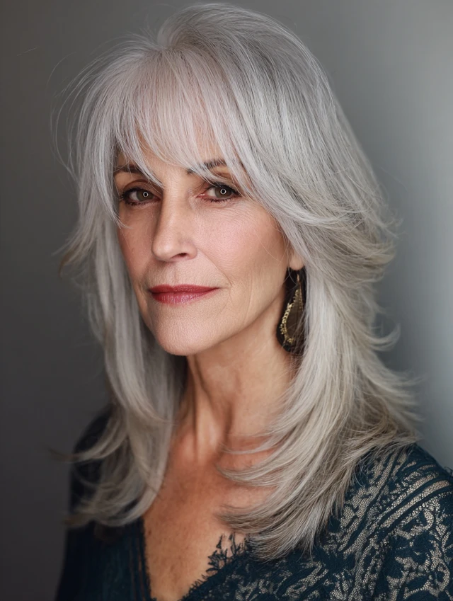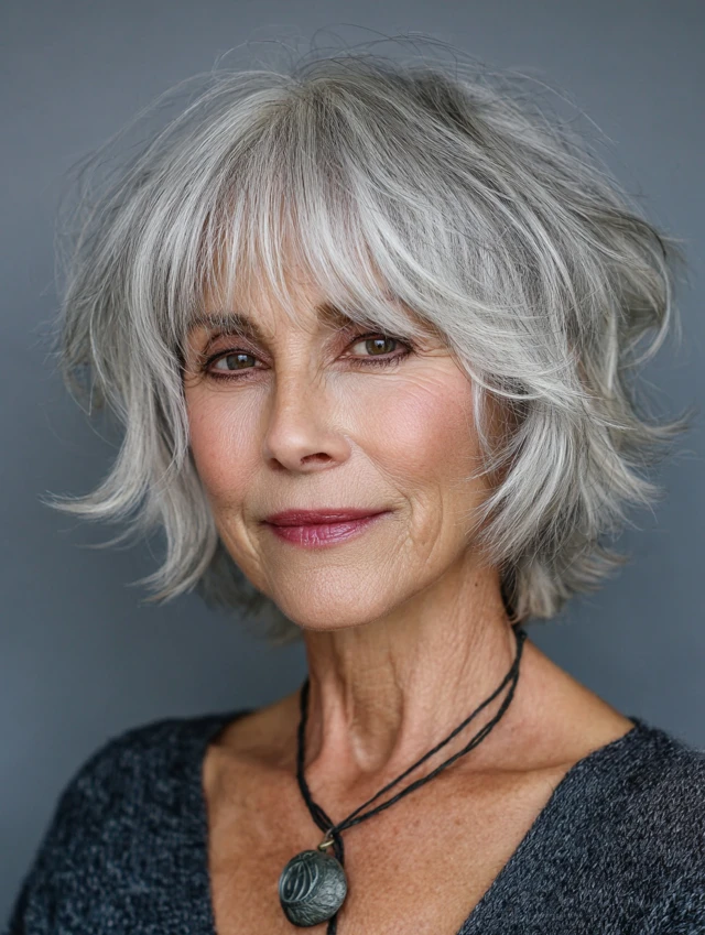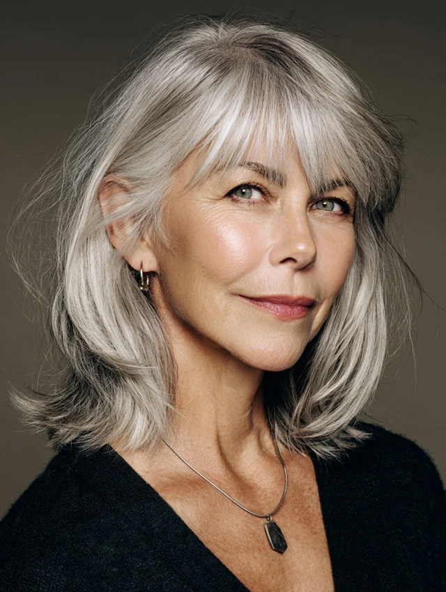 • Gray or salt & pepper hair — bangs add depth and softness