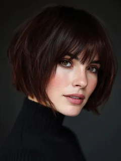Bangs = soft dimensions + youthful framing.