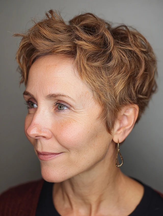 A pixie with textured layers adds lift and movement while keeping hair light and easy to style.