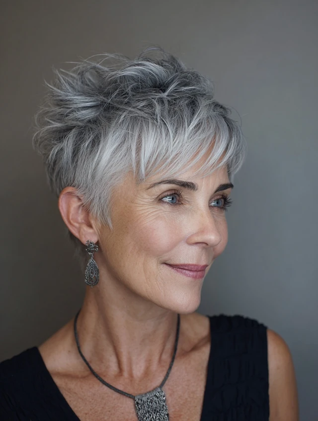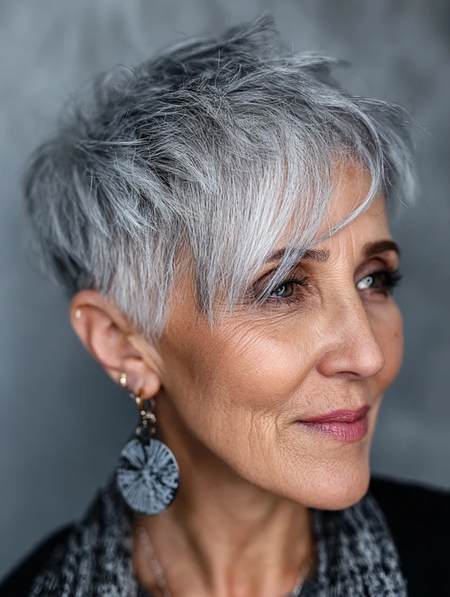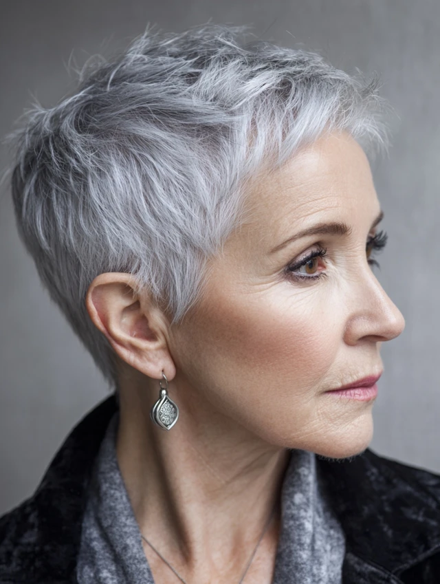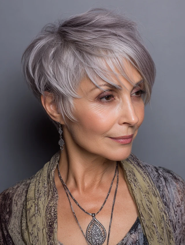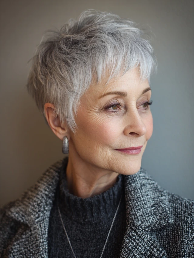 Pixie cuts celebrate silver tones beautifully and require minimal upkeep, making them perfect for women who want style without stress.