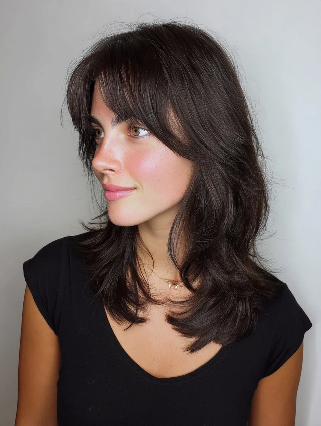 • Bangs: Side-swept, curtain, or wispy bangs add dimension.